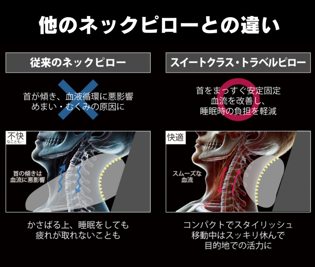 飛行機や新幹線の長距離移動。 不自然な姿勢で首や肩に疲れを溜めたまま目的地に到着すると、せっかくの旅行や重要な商談も、重苦しい気分でスタートすることになります。