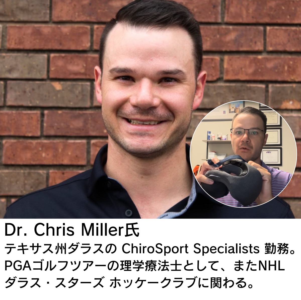 スイートクラス・トラベルピローは、アメリカの国家資格であるカイロプラクター資格を有し、PGAゴルフツアーやNHL(プロアイスホッケー)にも帯同するDr. Chris Miller氏の監修により開発されました。
