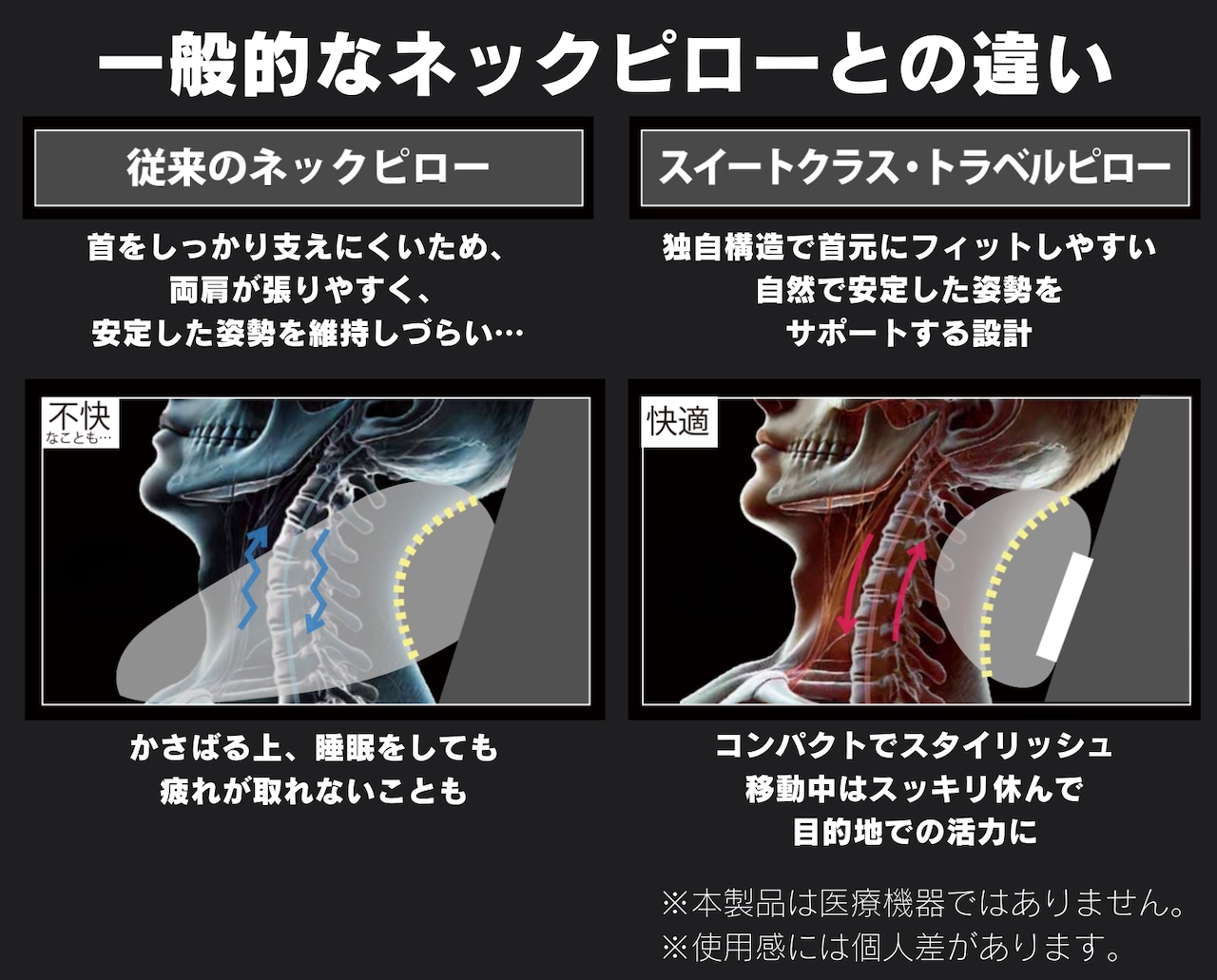 【高級ネックピロー】飛行機・新幹線で首をしっかりサポート|米国医療技術者監修|スイートクラス・トラベルピロー